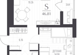 Продается однокомнатная новостройка, 46.8 кв.м., 1/6 эт
